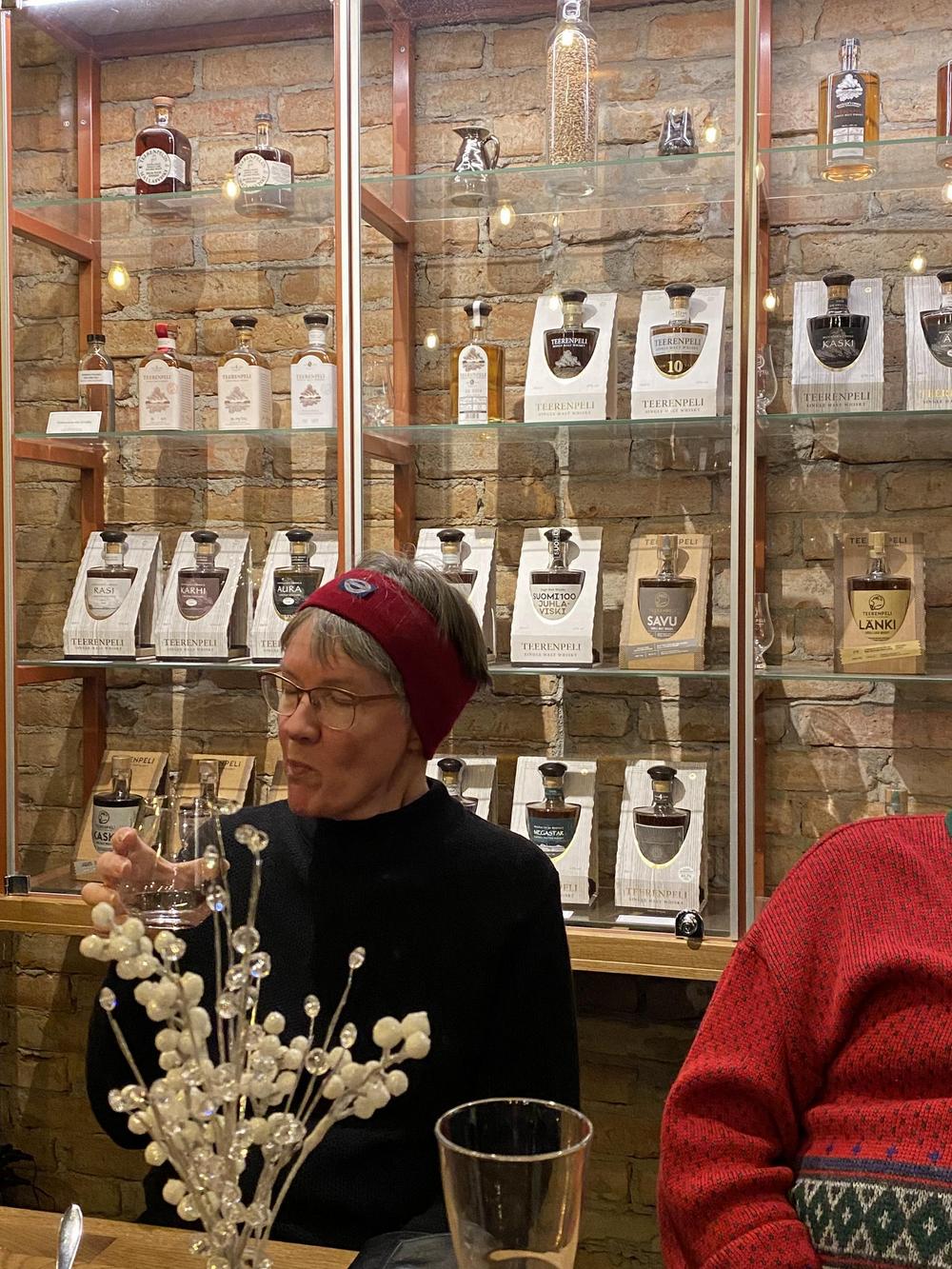 Lopuksi saimme maistella muutamaa erilaista viskiä. Eräs seniori kertoi, että kuningatar Elisabethin kastike tehdään viskistä ja kermasta, on kuulemma makuhermoja hivelevän hyvää. Siinä ilmeisesti pitkän iän salaisuus.