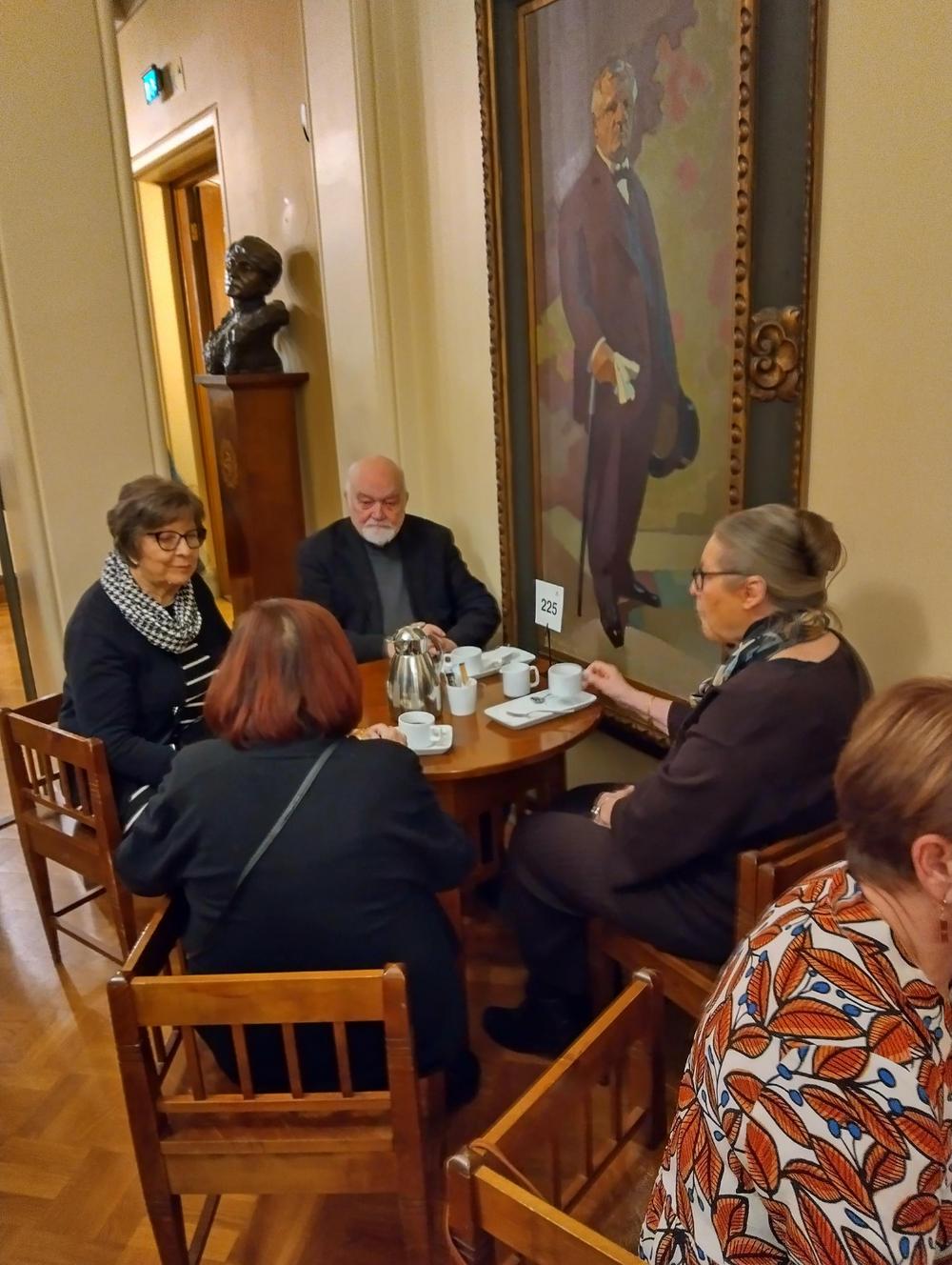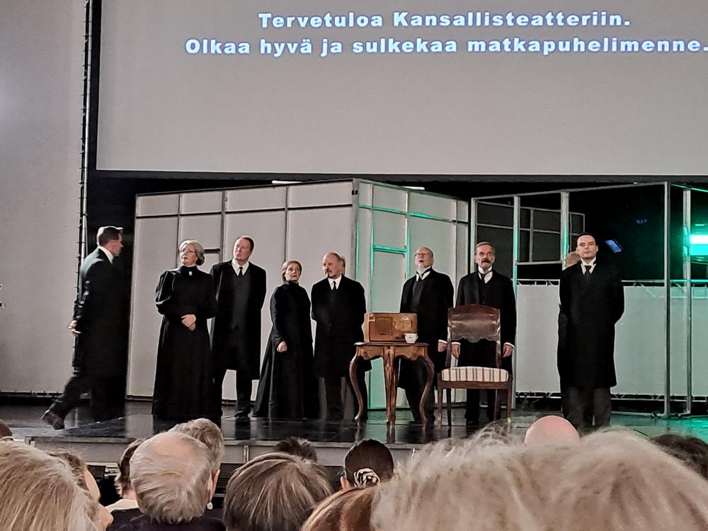 Retkellä Kansallisteatteriin saimme nauttia laadukkaasta esityksestä ja samalla tietoiskun historiasta. Bussissa meno ja paluu matkalla historioitsija Kyösti avasi "Ensimmäisen tasavallan" taustoja tunnetulla tyylillään ja asiantuntemuksella! Väliajalle Antti oli tilannut maittavan välipalan, eikä meidän tarvinnut jonottaa. Matkat sujuivat turvallisesti bussilla. Hieno ilta!