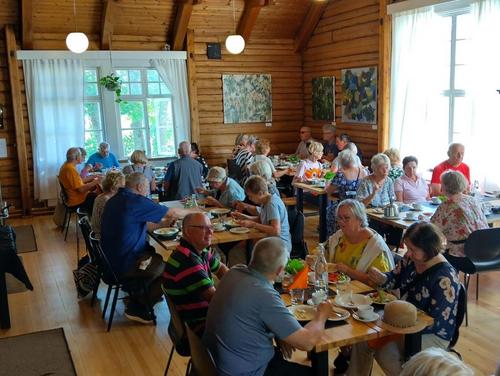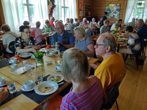 Kokoonnuimme Hollolan kirkolle opastetulle kävelyretkelle, oppaana Kyösti Toivonen, opastetun kävelyn jälkeen söimme maittavan lohikeiton Hollolan Vanhalla Kunnantuvalla. Kutsuttuna vieraanamme olivat Kärkölän ja Lahden senioreita.